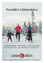 Familjärt i Edsåsdalen Foto: Jonas Kullman Längdspår & fjälleder • Enkla nedfarter • Sportbod & uthyrning Restaurang, bar & café • Logi • Pool & bastu • och mycket mer … FÖR INFO & BOKNING: 0647- 332 00, boka@edsasdalen.se | edsasdalen.se