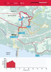 1 h 4 km 80 m , km Högåsen 163 Språngsdalen Platåkåtan Ottsjö Höjd (m) Ottsjön 494 m « Vålådalen Avstånd (km) 55